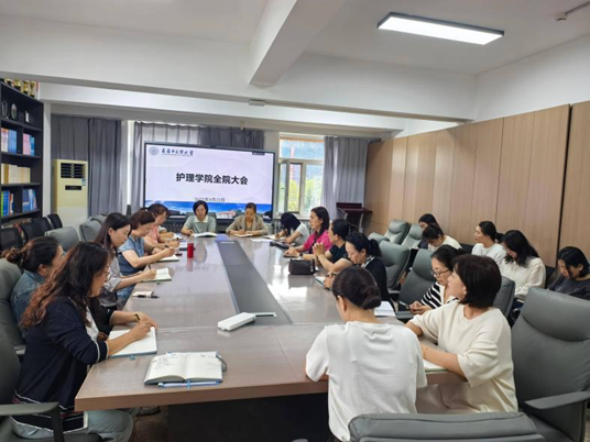 最后,书记李萍强调,本学期作为“十四五”规划收官冲刺阶段,全院教职工需以高度责任感抓实教学各环节:一要深化课程思政建设,推动思政元素与专业课程有机融合,全面提升学生思想政治素质和职业综合素养;二要强化就业升学指导,将学历提升理念融入日常教育,着力提高护理专业考研录取率与升学率;三要科学谋划“十五五”发展蓝图,要求全体教师立足岗位扎实履职,为学校“双一流”建设和学院高质量发展贡献力量。