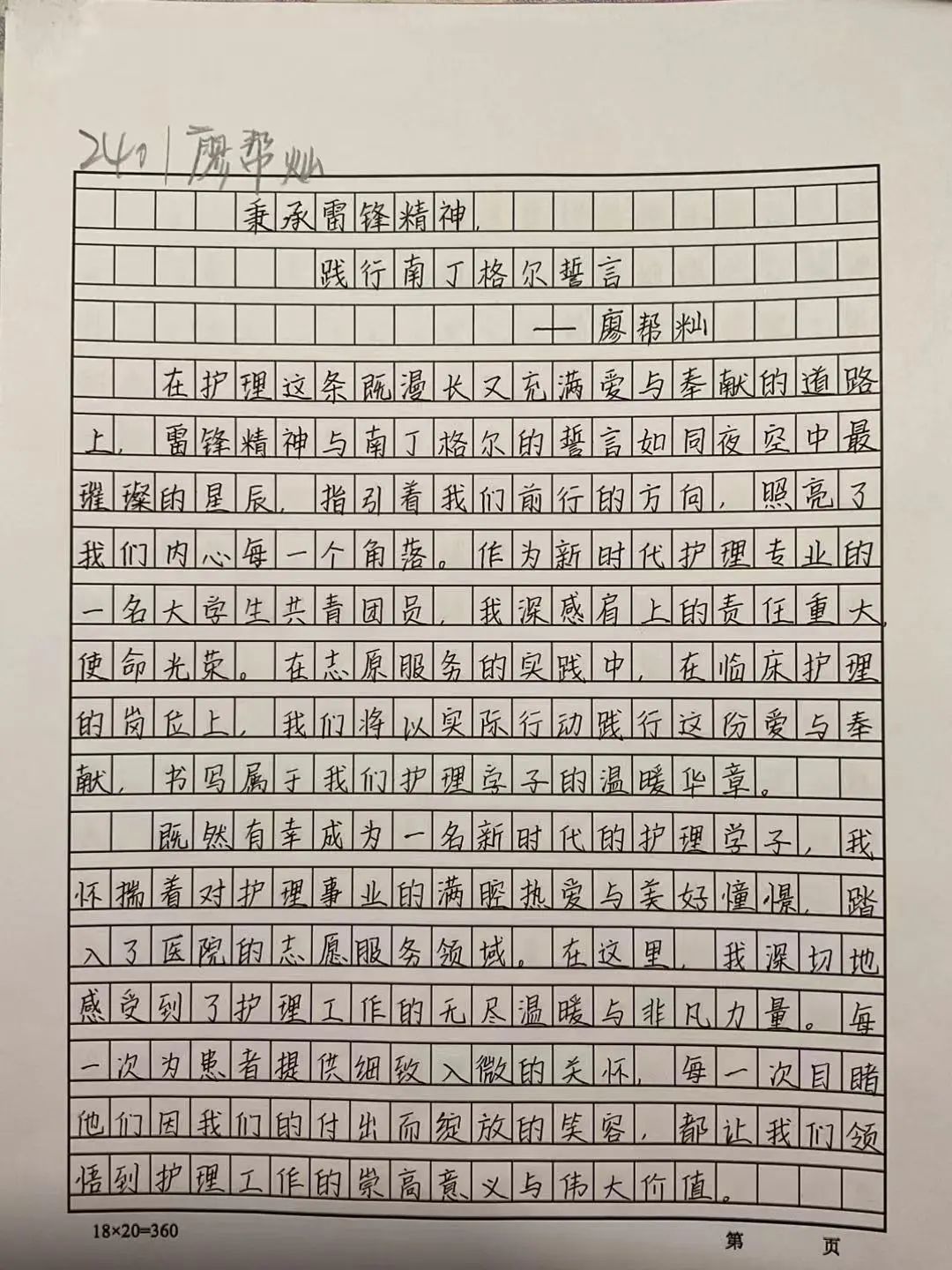 征文活动的参赛作品,同学们结合护理专业特色,通过临床见闻、志愿服务等真实案例,生动诠释了新时代护理人对雷锋精神的深层解读,展现了同学们对雷锋精神时代内涵的深刻理解。
