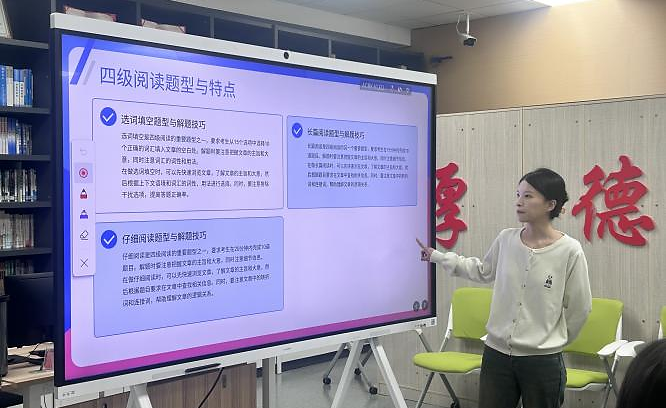 交流分享中,唐文文同学思路清晰,为同学们讲述了如何备战四级。首先,唐文文同学大致讲述了四级考试的结构与备考技巧。其次,她讲述了积累词汇的重要性,以及快速记忆的方法。最后,唐文文同学按照四级考试的题型分享了其各类的解题技巧,并向同学们传授了考前心态的调节方法。通过本次的经验分享和互动答疑,同学们不仅在轻松的氛围中收获了备考干货,更燃起了冲刺四级的信心与热情。