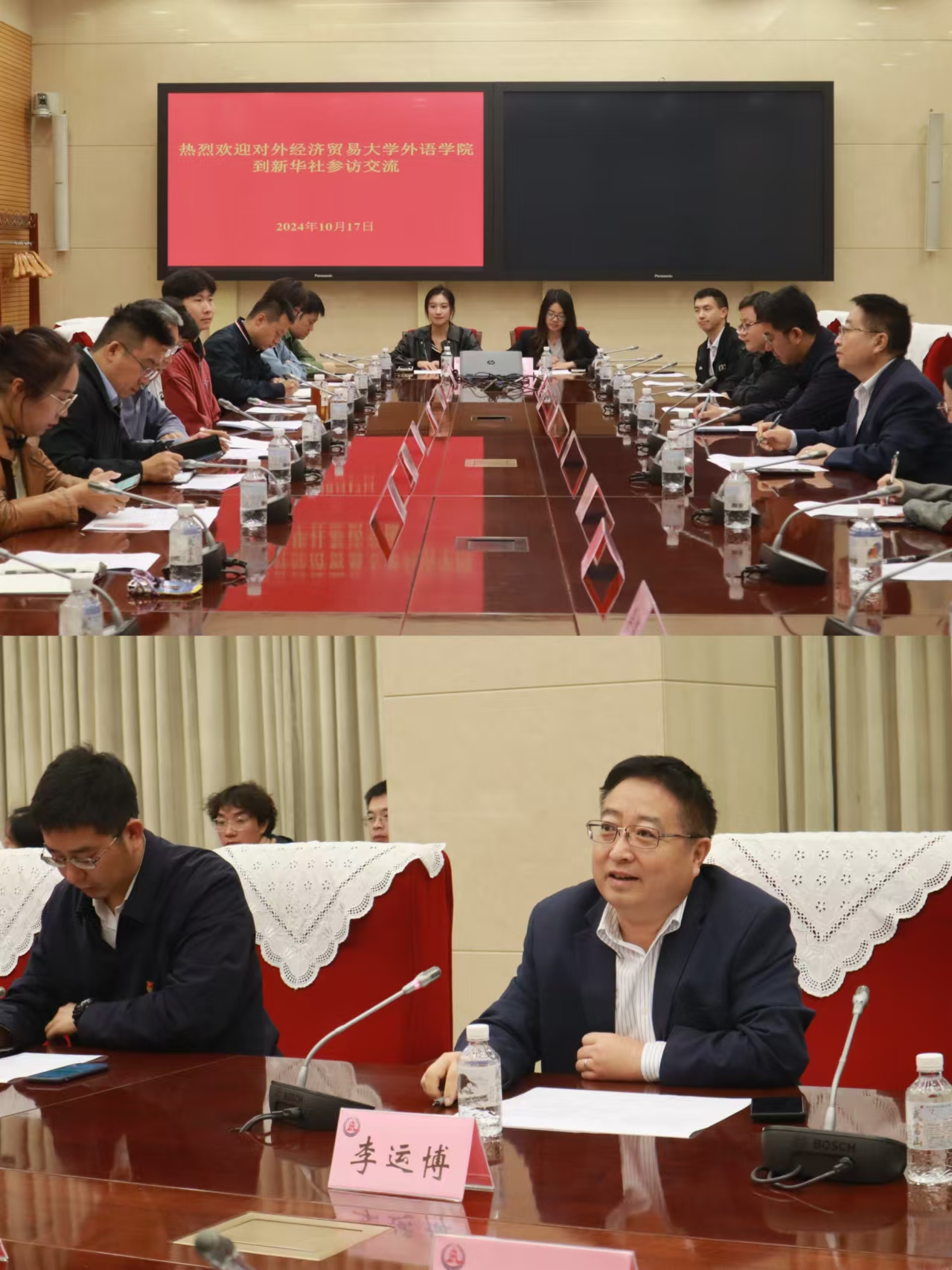 双方进行了深入、热烈的交流,并洽谈了合作事宜。李运博院长在发言中感谢新华社的热情接待。他表示,这次拜访让师生近距离感受了新华社的历史积淀和媒体技术的最新发展,深刻体会了国际传播事业的繁荣发展和艰巨挑战,对学院未来的教育教学改革和学生职业生涯规划都有重要启发。永利皇宫463cc将进一步创新复合型人才培养模式,让学生“一精多会、一专多能”,培养更多向世界讲好中国故事、帮助国际社会正确认识中国、有效提升我国国际话语权的高素质外语人才。